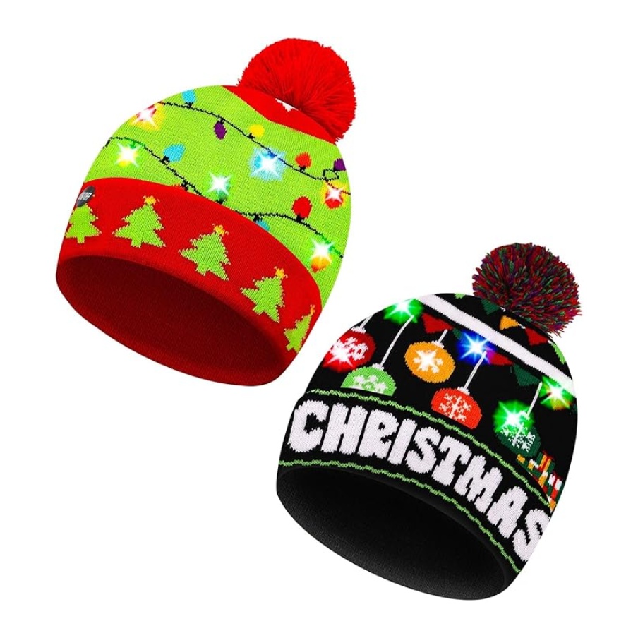 - Pair this merry accessory with your ugliest Christmas sweater for a holly jolly contest-winning look. This led hat is a fun photo booth prop.