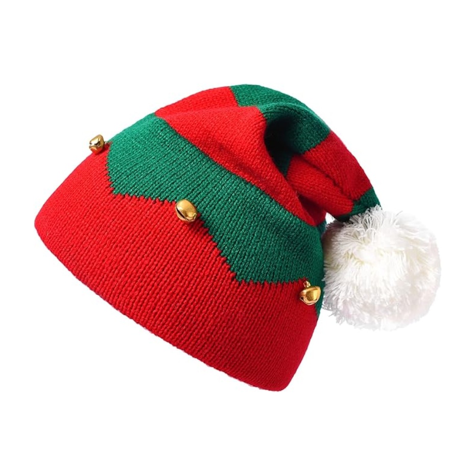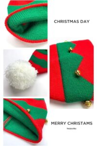 - Pretty Christmas Design: Classic red and green elf knitted hats embellished with small bells, the pom-pom hats look adorable and beautiful, which can be worn not only in the daily life but also in parties